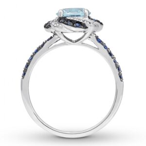 Aquamarine & Tanzanite Ring 1/3 ct tw Diamonds 14K Gold