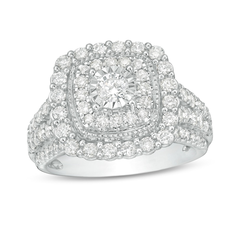 1-1/2 CT. T.W. Diamond Double Cushion Frame Engagement Ring in 10K White Gold