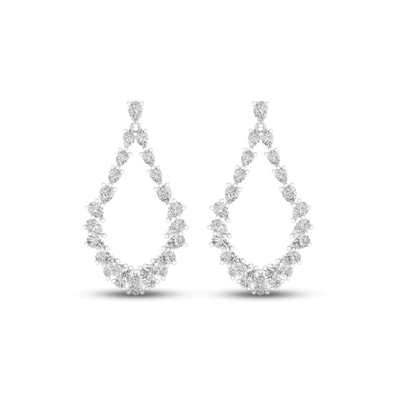 These luxuriant earrings feature dazzling pear-shaped diamonds forming a dangling teardrop design. Fashioned in iconic 14K white gold, the earrings have a total diamond weight of 2 1/2 carats and secure with friction backs.